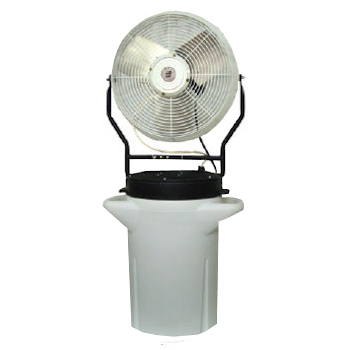 Self-contained misting system with water pumped from a 10 gallon tank.
