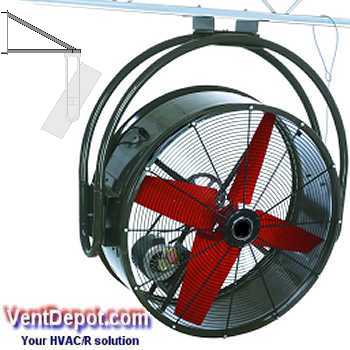 The VentDepot WallBreezer is a practical, rugged, low-cost air mover used worldwide. Includes Wally extension bracket for wall or column mounting. Built with heavy gauge cold rolled steel barrels. 10 Ft. grounded, 3 conductor cord with molded plug. Spiral wound wire guard meets OSHA requirements. Attractive bronze powder coat finish. Frame is heavy duty tubing. Tilts 90° up and swivels 360°. Includes safety cable. Product Applications