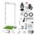 El Kit Incluye alfombra, tubería, limpiador, pegamento, cinchos, sanitizante médico de 1L, depósito de plástico para agua de 20L y su soporte.