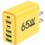 La capacidad total del cargador es de 65W, lo que significa que puede suministrar hasta 65W en total a todos los puertos combinados, por lo que puedes cargar varios dispositivos a alta velocidad.
