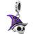 SkullWitch01, es un charm colgante decorativo con diseño temático de Halloween, ideal para pulseras y accesorios personalizables. Este simpático diseño presenta una figura de calavera plateada con incrustación de cristal negro en el ojo principal, acompañada de un sombrero de brujo morado con detalles de estrellas negras que le otorgan un estilo mágico y festivo.