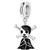 El diseño de calavera sonriente y huesos cruzados, acompañado de un vestido esmaltado en color negro con detalles plateados, combina lo divertido con un toque gótico, ideal para pulseras tipo charm o cadenas personalizadas.