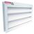 Cuenta con aletas fijas y marco perimetral de 2" de ancho, altura en múltiplos de 3" con anchos variables.